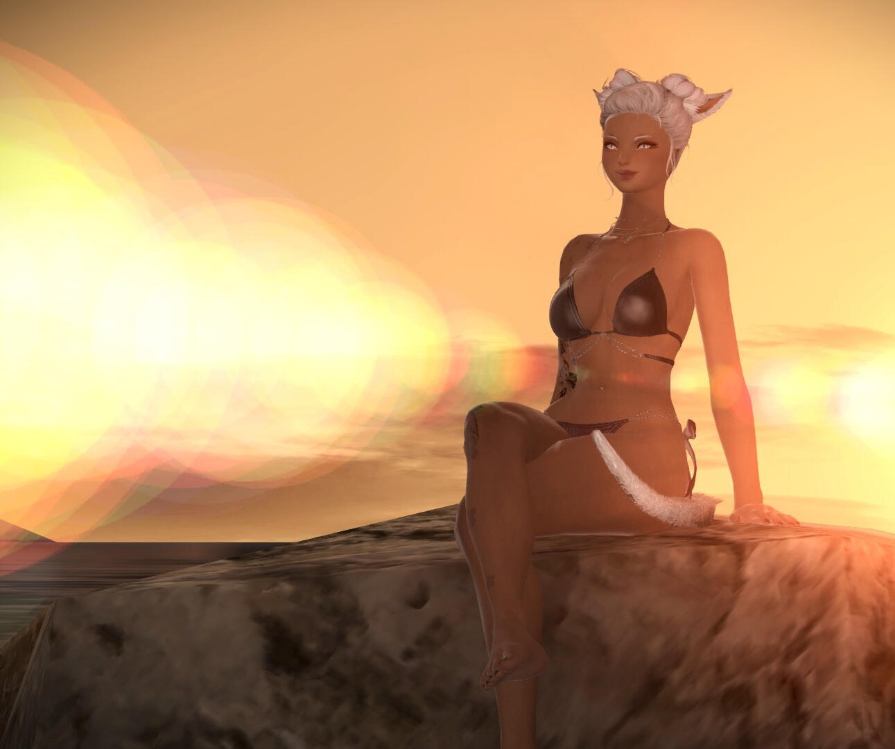 M'niho was born and raised in a small town outside of Ul'dah, a location chosen to give the family a wide berth from her hyur mother's past as a pirate. She has three brothers, the only daughter in a crazy but loving family.While her mother did her best to teach M'niho how to defend herself, and her father instilled some of his healing knowledge in her, M'niho never had much of a taste for adventure, though she hangs around with plenty who do. As for herself, she's content to spend her time working her way around Eorzea as a court, dancer, bartender, and maid, spending time with her friends and lovers, and occasionally helping her dramatic little brother out of whatever trouble he's gotten himself into.